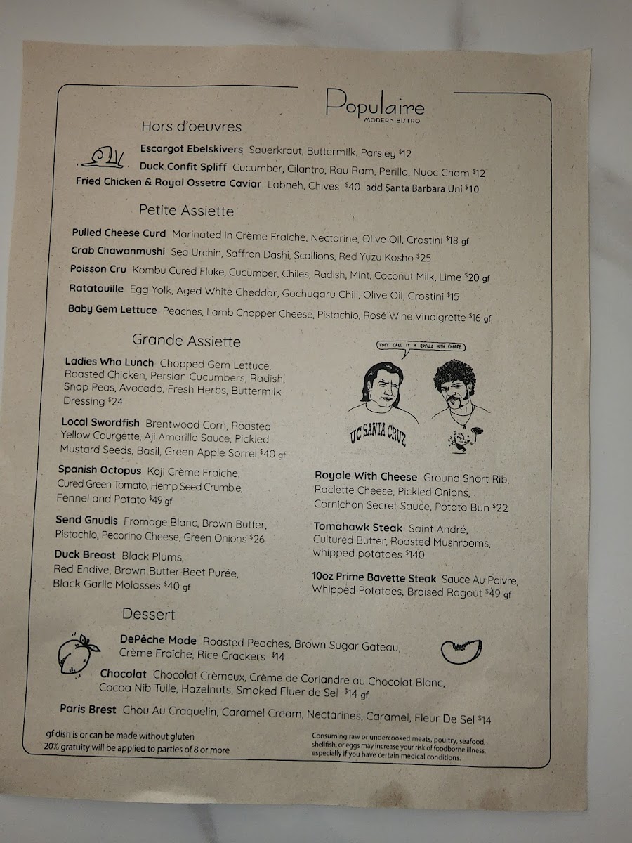 Welcome to Populaire Modern Bistro, the vibrant culinary gem nestled within South Coast Plaza, Costa Mesa. This bistro masterfully blends classic French inspirations with a modern twist, resulting in a menu that's both approachable and innovative.